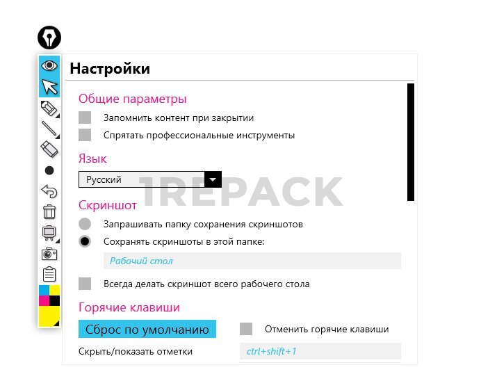 - Рисование и аннотации поверх любых окон и приложений