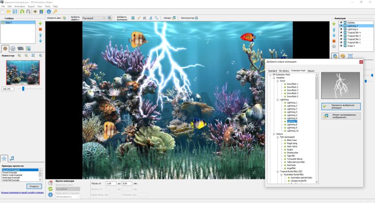 DP Animation Maker поддерживает работу с различными типами изображений, включая фотографии, рисунки и графику. Программа позволяет добавлять анимированные объекты, такие как животных, людей, транспорт и другие элементы, которые могут взаимодействовать с фоном и создавать сложные анимационные сцены.