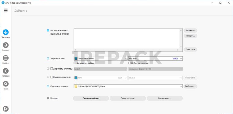 Any Video Downloader Pro — это инструмент для загрузки видео и аудио с различных онлайн-платформ, предназначенный для пользователей, желающих сохранять любимые медиафайлы для офлайн-просмотра. Программа поддерживает множество сайтов, включая YouTube, Vimeo, Facebook и другие популярные сервисы, обеспечивая гибкость и удобство в работе с контентом.Программа позволяет загружать видео в различных форматах и разрешениях, начиная от стандартных 480p и заканчивая высококачественными 4K. Пользователи могут выбирать желаемый формат, такой как MP4, MKV, AVI, а также аудиоформаты, включая MP3 и AAC, что обеспечивает совместимость с различными устройствами и медиаплеерами. Any Video Downloader Pro также поддерживает пакетную загрузку, позволяя скачивать несколько видео одновременно, что значительно экономит время.