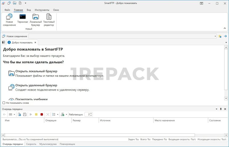 Программа поддерживает настройку многопоточности для ускорения передачи файлов и упрощения работы с большими объёмами данных. Она также имеет функцию восстановления прерванных загрузок и выгрузок, что гарантирует стабильность процесса передачи.