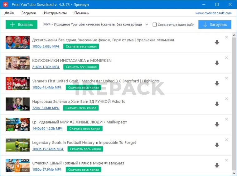 Free YouTube Download Premium отличается высокой скоростью загрузки и возможностью пакетной обработки, что позволяет загружать несколько видео одновременно. Программа также поддерживает автоматическое преобразование видео в выбранный формат и настройку выходного качества.