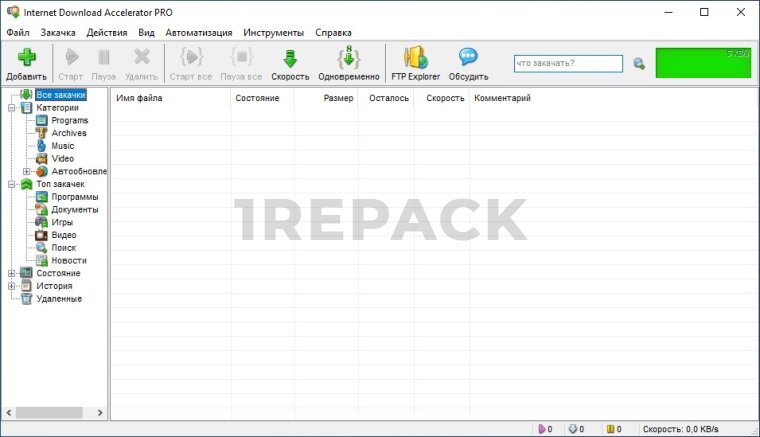 Internet Download Accelerator Pro — это программное обеспечение, предназначенное для эффективного управления загрузками с интернета. Программа объединяет в себе функции ускорения скорости скачивания, организации файлов и обеспечения удобства работы с различными типами загрузок. Интерфейс Internet Download Accelerator Pro разработан таким образом, чтобы пользователи могли легко ориентироваться в его возможностях и использовать их без особых усилий.Основная функция программы заключается в ускорении процесса загрузки файлов за счет использования нескольких соединений одновременно. Это позволяет значительно сократить время скачивания больших файлов, таких как фильмы, игры или обновления программного обеспечения. Пользователи могут также приостанавливать и возобновлять загрузки в любой момент, что обеспечивает гибкость при управлении ресурсами компьютера и интернет-соединением.