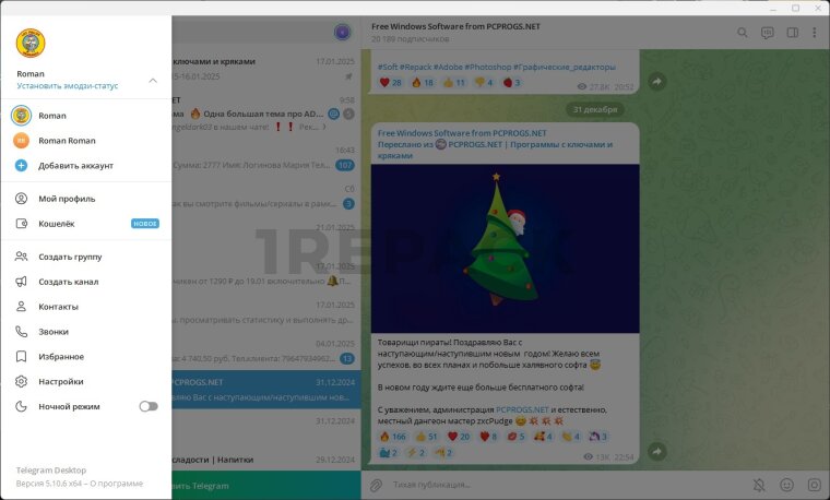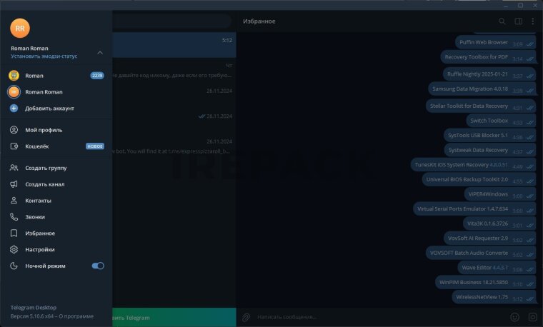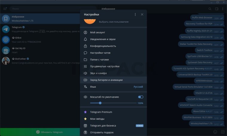 В приложении есть функция создания папок и закрепления важных чатов, что упрощает управление большим количеством диалогов и каналов. Также доступны настройки темы и интерфейса, позволяя пользователям подстраивать внешний вид под свои предпочтения.