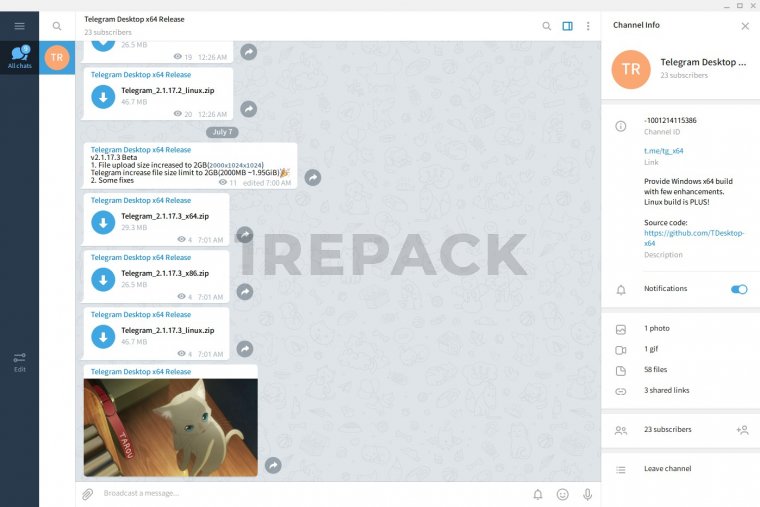 64Gram 1.1.77 на ПК (клиент Телеграм)