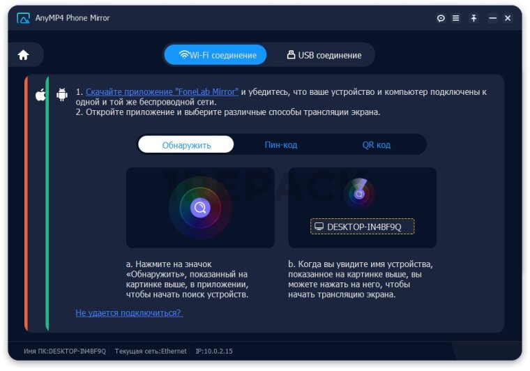 - Поддержка беспроводного (Wi-Fi) и проводного (USB) подключения