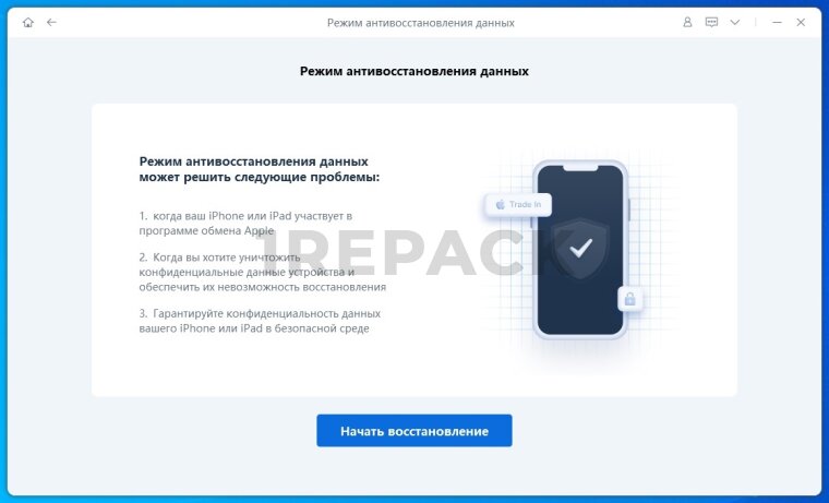 ReiBoot Pro — инструмент для восстановления и устранения неполадок iOS-устройств, предлагающий специализированные функции для выхода из различных режимов и исправления ошибок. Программа позволяет пользователям вывести iPhone, iPad или iPod из режимов восстановления, DFU, безопасного режима и других состояний одним нажатием.Одной из основных функций ReiBoot Pro является исправление системных ошибок, включая зацикливание на логотипе Apple, черный экран, бесконечные перезагрузки и зависания. Программа работает с любыми версиями iOS и может справиться с такими сбоями без потери данных, что особенно ценно для пользователей, которые не хотят рисковать информацией на своих устройствах.
