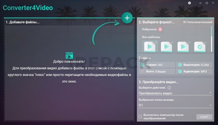 Converter4Video включает в себя множество предустановок, оптимизированных для разных устройств, что позволяет избежать ручной настройки параметров видео. Эти предустановки помогают быстро настроить видео под конкретное разрешение, соотношение сторон и качество.