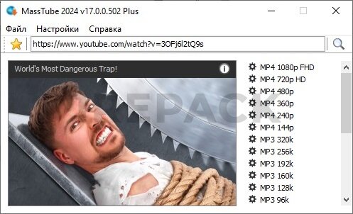 Интерфейс MassTube Plus прост и интуитивно понятен, что делает процесс загрузки быстрым и удобным. Достаточно вставить ссылку на видео в соответствующее поле, после чего программа предложит доступные варианты скачивания.