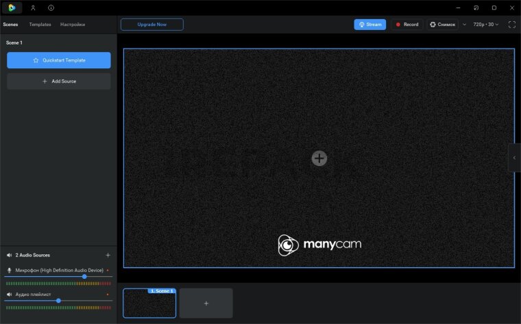 ManyCam поддерживает аудиомикширование — можно подключить несколько источников звука, управлять их уровнем, применять фильтры и эффекты. Встроенный эквалайзер и шумоподавление улучшают качество звука даже при работе в неидеальных условиях. Программа может использоваться для подкастов, голосовых презентаций и озвучивания видеоуроков.