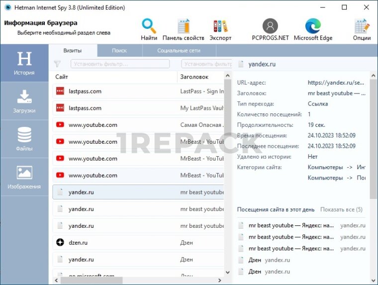 Hetman Internet Spy — это программное обеспечение для мониторинга интернет-активности на компьютере. Оно разработано для отслеживания действий пользователей в сети, обеспечивая подробную информацию о посещённых сайтах, отправленных сообщениях и использованных приложениях.Основные функции программы включают запись истории браузера, перехват сообщений из различных мессенджеров, мониторинг электронной почты и отслеживание использования социальных сетей. Также Hetman Internet Spy способен фиксировать нажатия клавиш, что позволяет получать информацию о вводимых паролях и другой конфиденциальной информации.