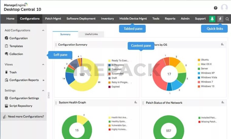 Desktop Central Enterprise — универсальная система, с помощью которой можно централизованно управлять компьютерами и мобильными устройствами в пределах одной организации. Программа ориентирована на контроль и обслуживание большого количества рабочих станций, серверов, ноутбуков и телефонов, вне зависимости от того, работают они в офисе или находятся удалённо. Всё управление ведётся из одного окна, что упрощает работу IT-отдела и снижает нагрузку на технический персонал.Программа автоматизирует повседневные задачи, которые в противном случае пришлось бы выполнять вручную: установка программ, настройка политик, развёртывание обновлений и контроль оборудования. В случае появления уязвимостей или отклонений от установленных параметров администратор получает уведомление и может оперативно вмешаться. Это позволяет быстрее реагировать на нестандартные ситуации и поддерживать стабильность всей системы.