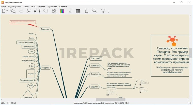 - Создание и редактирование ментальных карт с многоуровневой структурой