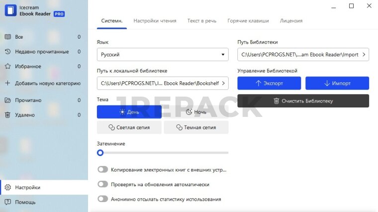 IceCream Ebook Reader — это приложение для чтения электронных книг на компьютере, поддерживающее форматы EPUB, MOBI, FB2, PDF и другие. Оно предназначено для удобного управления библиотекой книг и создания коллекций, что позволяет легко находить нужные материалы.Программа позволяет настраивать режим чтения, включая ночной и дневной режимы, а также менять шрифты и цвет фона, чтобы обеспечить комфортное чтение в любых условиях. Также доступен полноэкранный режим, который убирает отвлекающие элементы интерфейса и создает среду, приближенную к чтению на бумаге.