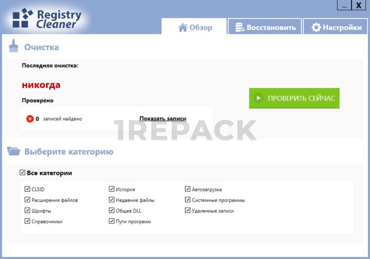- Тщательный скан реестра для обнаружения ошибок и дубликатов;