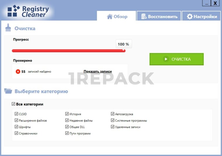 - Глубокий анализ реестра для максимальной эффективности очистки;
