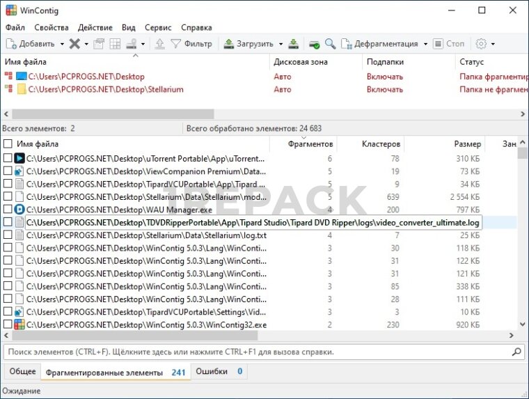 Интерфейс программы интуитивно понятен: пользователи могут добавлять файлы в список и сразу запускать процесс дефрагментации. WinContig также поддерживает настройку фильтров, позволяя исключить или включить только определенные типы файлов для обработки. Это делает её отличным выбором для пользователей, которым нужна избирательная дефрагментация.