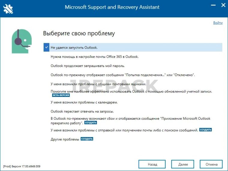 Интерфейс программы прост и интуитивно понятен. Пользователь выбирает продукт, с которым возникла проблема, и описывает её характер. После этого Microsoft Support and Recovery Assistant выполняет диагностику и предоставляет рекомендации или автоматически применяет исправления.