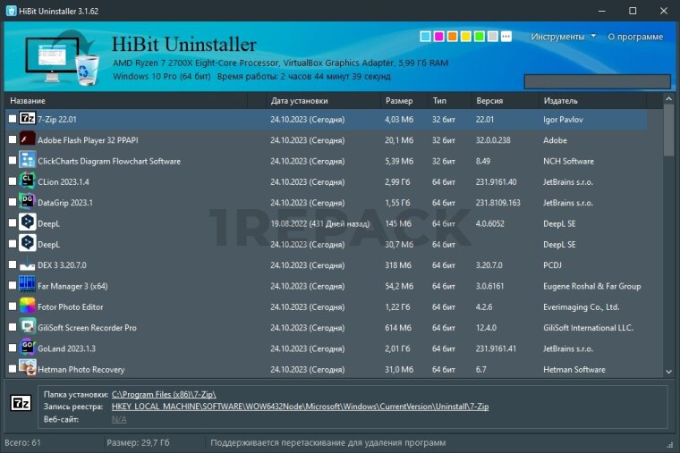 HiBit Uninstaller — это программное обеспечение для полного удаления приложений с компьютера, включая все остаточные файлы и записи в реестре. Программа разработана для пользователей, которые хотят очистить свою систему от ненужных программ и увеличить её производительность. Интуитивный интерфейс HiBit Uninstaller позволяет легко управлять всеми установленными приложениями и гарантирует полное удаление каждого из них.Основная функция HiBit Uninstaller — удаление программ с последующим глубоким сканированием системы. После стандартного удаления приложение проводит сканирование и удаляет оставшиеся файлы, папки и записи в реестре, что помогает предотвратить накопление ненужных данных и освободить место на диске. Это особенно полезно для пользователей, которые часто устанавливают и удаляют приложения.