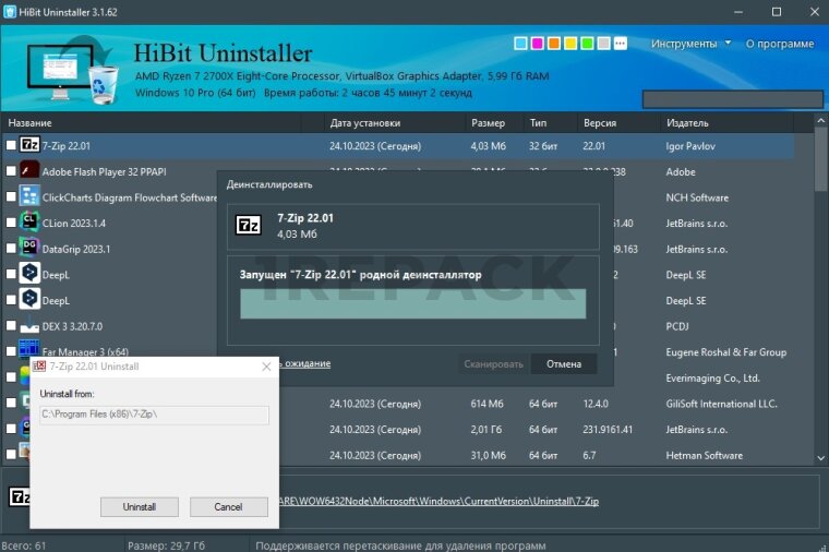Список возможностей HiBit Uninstaller: