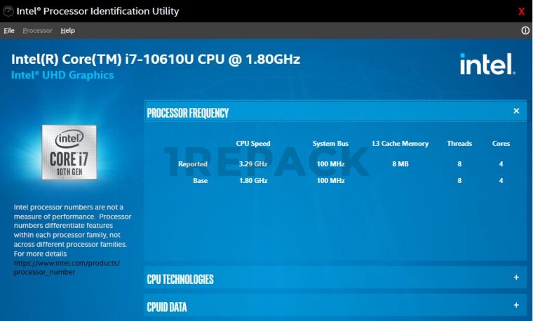 Intel Processor Identification Utility — это официальная утилита от компании Intel, предназначенная для предоставления подробной информации о процессорах Intel, установленных на компьютере. Программа помогает пользователям узнать ключевые характеристики процессора, такие как модель, частота, количество ядер, поддерживаемые технологии и другие технические параметры. Она полезна как для энтузиастов, так и для ИТ-специалистов, которые хотят точно определить возможности и конфигурацию своего процессора.Утилита отображает такие параметры, как базовая и максимальная тактовая частота, поддержка технологий виртуализации, Hyper-Threading, Intel Turbo Boost и других возможностей. Intel Processor Identification Utility также помогает проверить соответствие характеристик процессора его спецификациям, что может быть важно для определения подлинности и соответствия требованиям программного обеспечения.