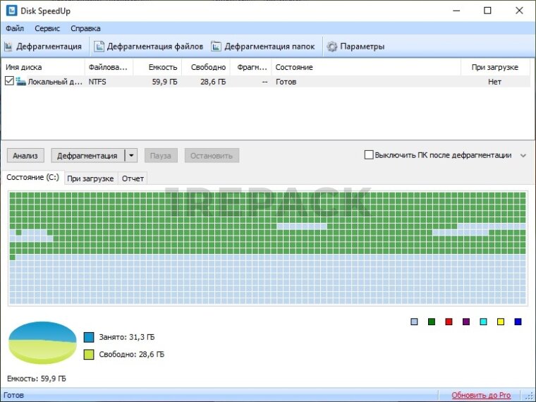 - Анализ диска для выявления фрагментированных файлов