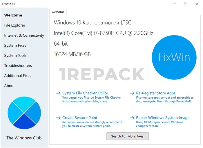 FixWin 11 — это специализированное программное обеспечение для диагностики и устранения распространённых проблем операционной системы Windows 11. Программа разработана для упрощения процесса восстановления стабильной работы системы без необходимости глубоких технических знаний. Интерфейс интуитивно понятен, что позволяет пользователям быстро находить и применять необходимые исправления.Основные функции FixWin 11 включают автоматическое обнаружение и исправление различных ошибок, связанных с производительностью, стабильностью и безопасностью системы. Программа охватывает широкий спектр проблем, таких как сбои при обновлении Windows, ошибки реестра, проблемы с драйверами и конфигурацией системы.