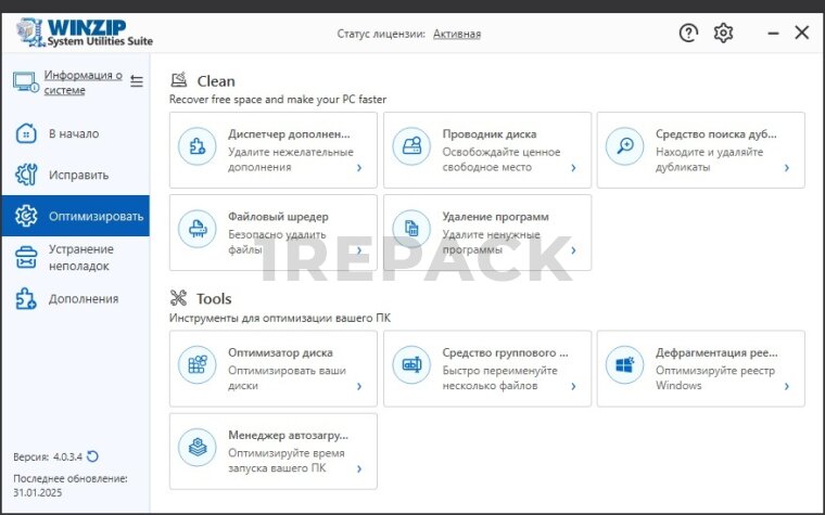 WinZip System Utilities Suite — комплекс инструментов для оптимизации, очистки и поддержания стабильной работы компьютера. Программа предназначена для быстрого восстановления производительности системы и предотвращения возможных сбоев.Приложение выполняет глубокую очистку дисков, удаляя ненужные файлы, временные данные и кэш, освобождая место и ускоряя работу системы. Инструменты дефрагментации диска помогают организовать данные на жестком диске, улучшая скорость доступа к информации и оптимизируя использование памяти.