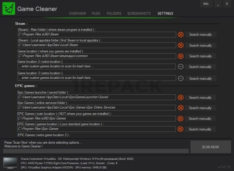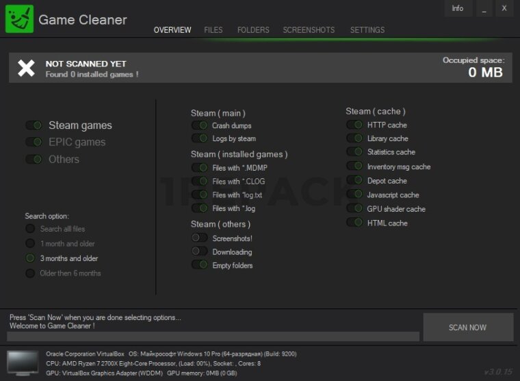 Game Cleaner — это утилита, предназначенная для оптимизации производительности компьютера, удаляя временные файлы и ненужные данные, оставшиеся после игр. Программа помогает освободить место на диске, очистить кэш и временные файлы, созданные игровыми приложениями, что улучшает работу системы и обеспечивает больше свободного пространства для новых игр и программ.Основное назначение Game Cleaner — это обеспечение чистоты системы после установки и удаления игр, а также повышение общей производительности компьютера. Программа ищет оставшиеся после игр временные файлы, кэшированные данные, ненужные журналы и другие следы, которые могут замедлять работу системы или занимать лишнее место на диске.
