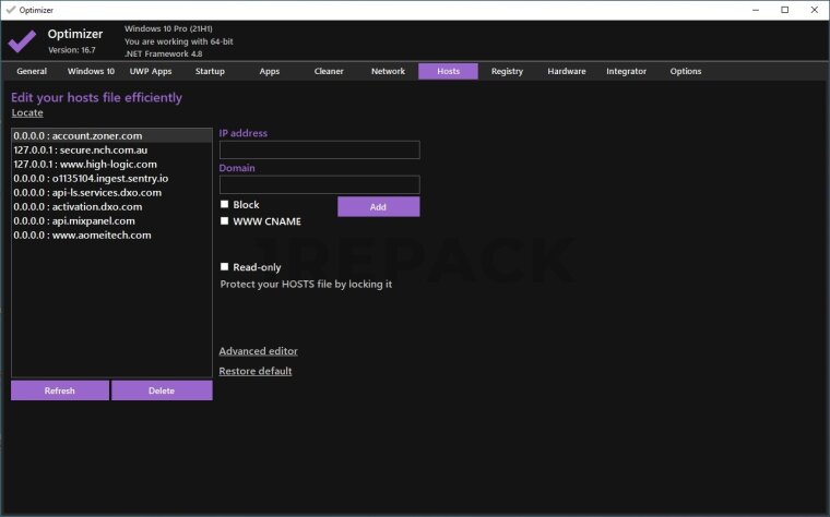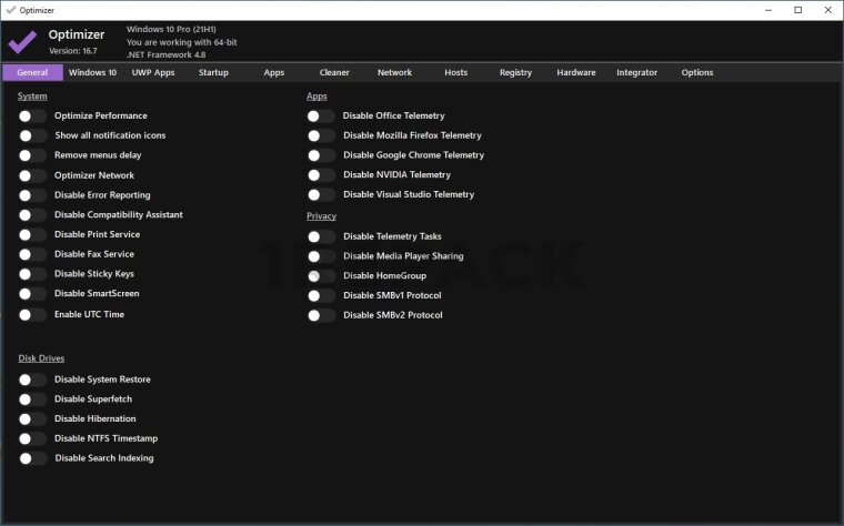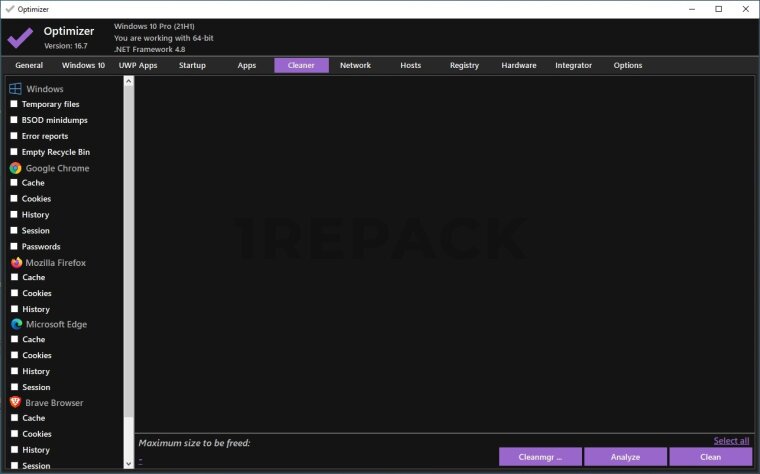 Optimizer — это инструмент для оптимизации и настройки системы, созданный для улучшения производительности компьютера, устранения ненужных файлов и управления параметрами конфиденциальности. Программа подходит как для опытных пользователей, так и для тех, кто хочет ускорить работу системы и настроить её под свои потребности.Среди главных функций Optimizer — возможность удаления временных файлов и других ненужных данных, которые накапливаются и занимают место на жёстком диске. Это помогает освободить память и ускорить доступ к другим данным, что особенно важно для старых или загруженных систем.