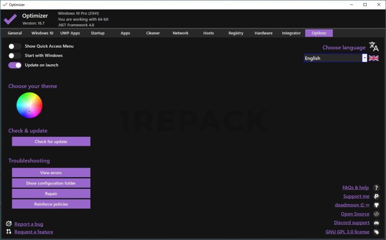 Благодаря поддержке нескольких языков и простому интерфейсу, Optimizer доступен для широкого круга пользователей. Программа работает на различных версиях Windows и включает возможности, которые подойдут как для стандартных, так и для продвинутых настроек.