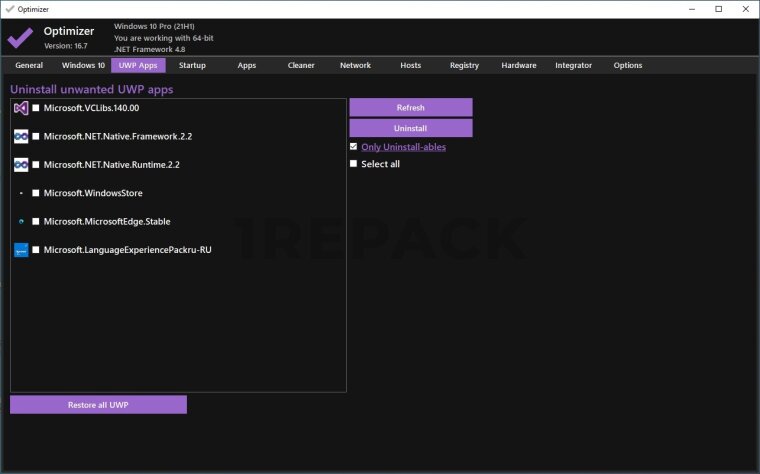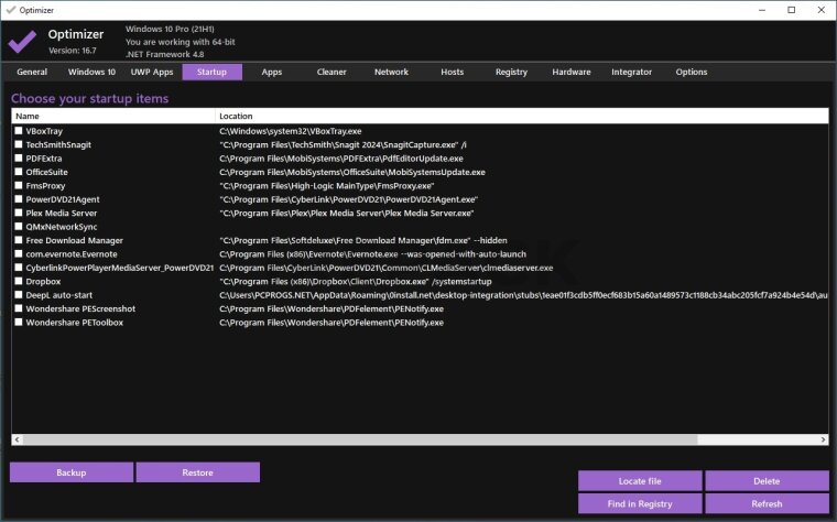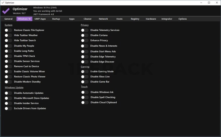 Optimizer позволяет тонко настроить параметры Windows, включая отключение ненужных функций и служб, которые замедляют работу системы. Пользователи могут управлять автозагрузкой программ, что уменьшает время запуска компьютера и снижает нагрузку на оперативную память.