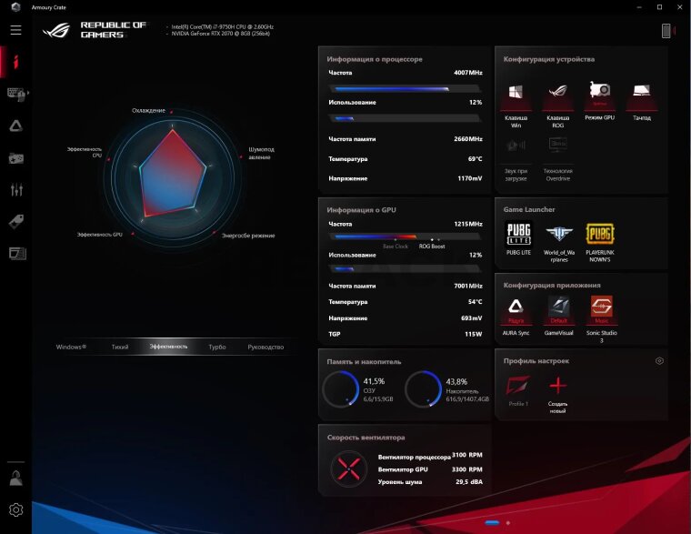 Возможности Asus Armoury Crate включают: