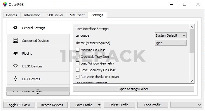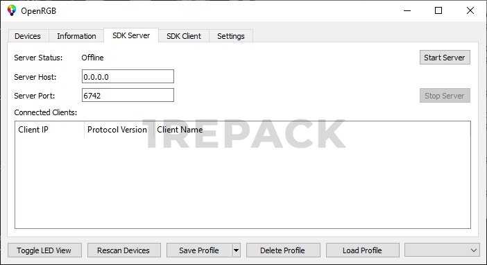 OpenRGB может сохранять профили, которые удобно переключать, например, при смене времени суток, задачи или настроения. Есть поддержка сетевого режима: один компьютер может управлять подсветкой других, если те подключены по локальной сети. Это особенно удобно в студиях, игровых зонах и на презентационных стендах.