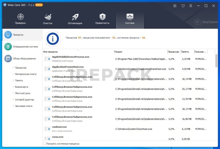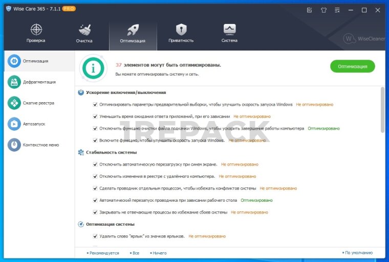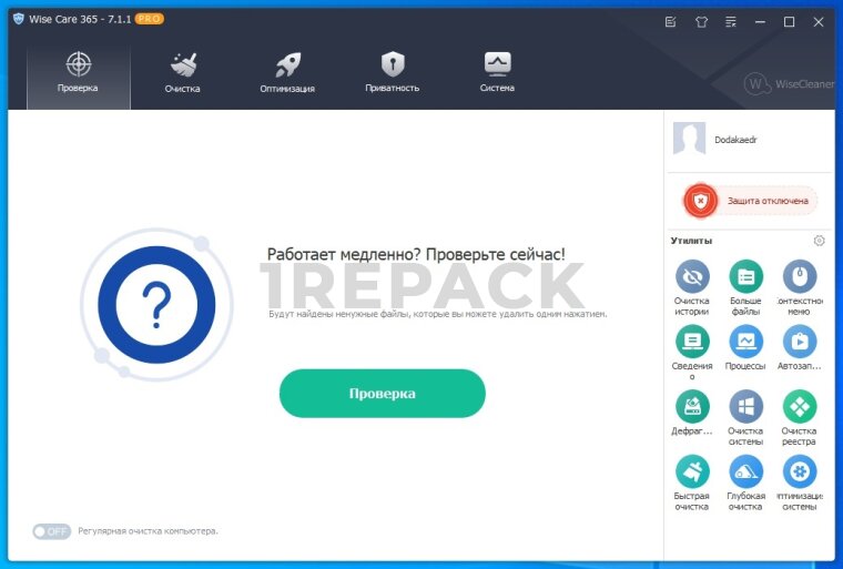 Wise Care 365 Pro — программа для оптимизации и очистки компьютера, поддерживающая стабильную и быструю работу системы. Она включает в себя инструменты для очистки ненужных файлов, исправления ошибок реестра, защиты конфиденциальных данных и управления автозагрузкой.С ее помощью можно очистить временные файлы, кэш, следы интернет-активности и другие ненужные данные, которые со временем накапливаются и занимают место на диске. Это улучшает общую производительность системы и освобождает дополнительное пространство для хранения файлов.