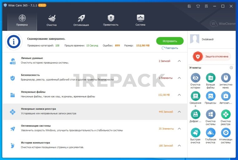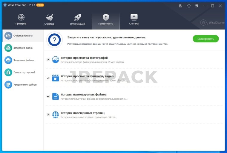 Для повышения безопасности Wise Care 365 Pro включает функции защиты личных данных. Пользователи могут удалять историю браузера, куки и другие элементы, которые могут содержать конфиденциальные сведения, тем самым снижая риск утечки информации.