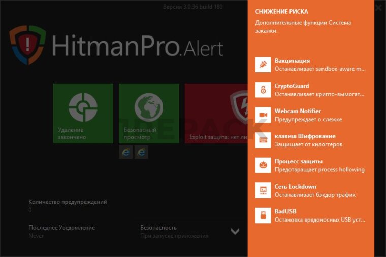 Защита от кейлоггеров и других видов шпионских программ делает HitmanPro.Alert полезной для пользователей, которые работают с конфиденциальной информацией, такими как пароли, банковские данные и прочие личные сведения. Программа предотвращает запись вводимых данных, защищая пользователя от кражи информации.