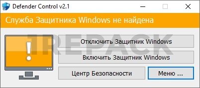 - Удобное управление Windows Defender с возможностью быстрого отключения и включения