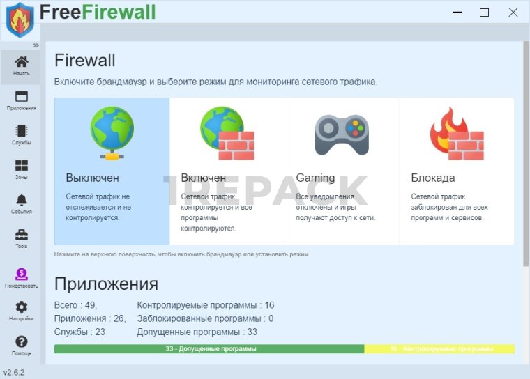 Free Firewall — это бесплатное программное обеспечение для защиты компьютера от несанкционированного доступа через сеть и интернет. Это мощный инструмент, который позволяет контролировать все входящие и исходящие подключения, обеспечивая безопасность вашей системы и данных. Free Firewall подходит как для обычных пользователей, так и для продвинутых пользователей, которым нужен полный контроль над сетевым трафиком.Основная задача Free Firewall — это блокировка несанкционированных попыток подключения к компьютеру, что предотвращает взлом, утечку данных и шпионские атаки. Программа предлагает возможность контроля за каждым приложением, запущенным на компьютере, и позволяет пользователям вручную разрешать или блокировать сетевые подключения для каждого приложения или процесса.