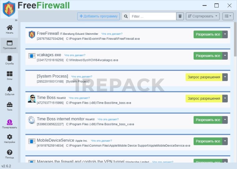 Free Firewall — это надёжное и эффективное решение для защиты компьютера от угроз, связанных с сетью. Программа позволяет контролировать все сетевые подключения и предоставляет мощные инструменты для блокировки подозрительной активности, что помогает защитить ваши данные и систему от взломов и утечек.