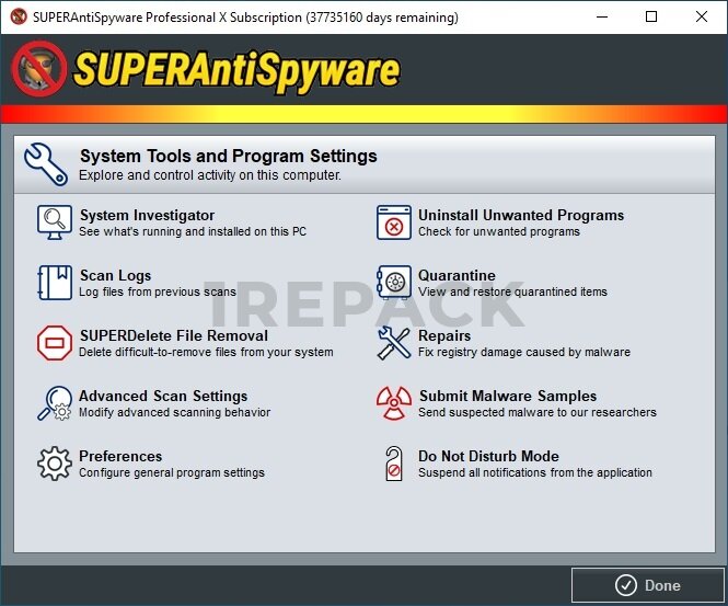 SuperAntiSpyware также включает инструменты для исправления поврежденных системных настроек, которые часто меняются вредоносным ПО. Программа восстанавливает параметры браузера, проводника, подключений к сети и другие важные настройки, нарушенные вредоносными программами.