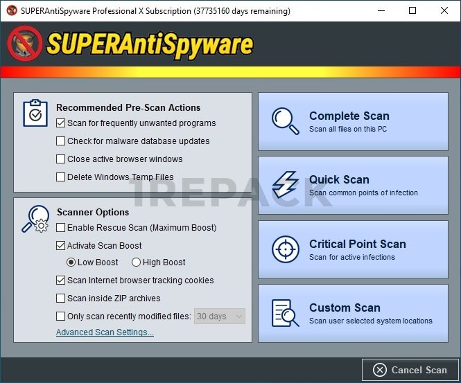 SuperAntiSpyware Professional X — программа для защиты компьютера от вредоносного ПО, включая шпионские программы, трояны, руткиты, рекламное ПО и черви. Программа обеспечивает многоуровневую защиту, предлагая как обнаружение и удаление угроз, так и профилактические инструменты для предотвращения проникновения вредоносных элементов.SuperAntiSpyware сканирует систему на глубоком уровне, обнаруживая скрытые угрозы, которые могут оставаться незамеченными другими антивирусными решениями. Доступны различные режимы сканирования: полное, быстрое и пользовательское, что позволяет пользователю настроить уровень и продолжительность проверки в зависимости от ситуации.