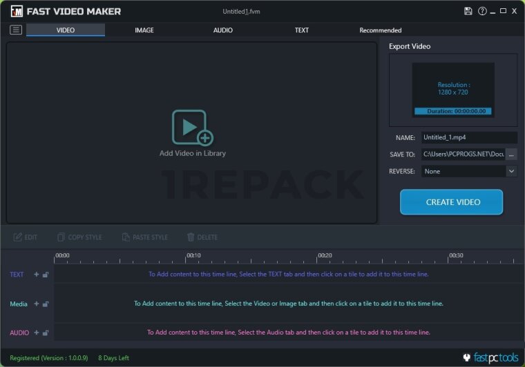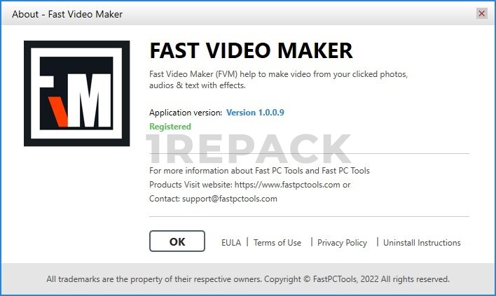 Fast Video Maker поддерживает экспорт видео в различные форматы, что делает его универсальным решением для работы с разными устройствами и платформами. Программа отличается лёгкостью в использовании и минимальными системными требованиями, что позволяет ей работать на большинстве современных компьютеров без задержек и зависаний.