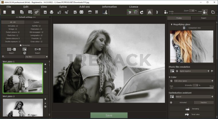 - Эмуляция различных типов плёнки и классических кинематографических эффектов