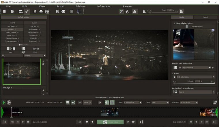 Franzis ANALOG Video позволяет обрабатывать видеофайлы разных форматов и разрешений, включая HD и 4K, что делает его подходящим для профессионального использования. Программа поддерживает экспорт готовых видеопроектов в различные форматы для дальнейшего редактирования или публикации.