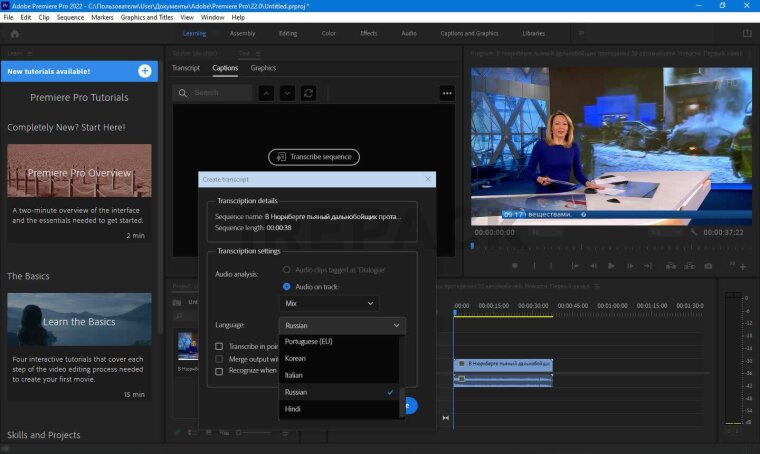 - Редактирование и корректировка транскрипций прямо в Premiere Pro