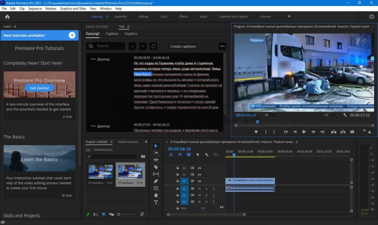 Инструмент также интегрируется с другими функциями Premiere Pro, что обеспечивает простоту использования и быструю интеграцию текста в проект. Это помогает ускорить процесс создания видео, сократить время на ручное транскрибирование и повысить точность субтитров.